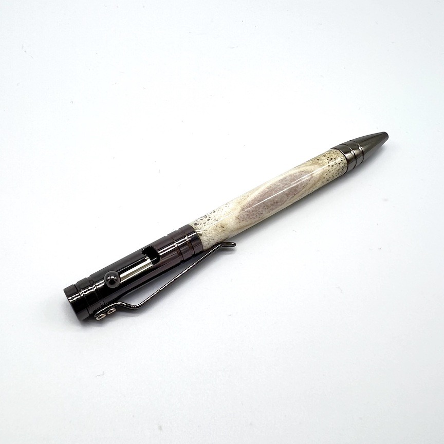 The Trendsetter Bolt-Action Deer Antler Pen is where style meets function. This pen combines sleek design with practical innovation. Its unique bolt-action mechanism smoothly extends and retracts the pen tip for effortless use. Crafted with precision from premium materials, The Trendsetter offers durability and comfort. Available in two stylish finishes, it’s a statement accessory for those who appreciate both style and functionality. Upgrade your writing experience with The Trendsetter and stand out from the crowd.